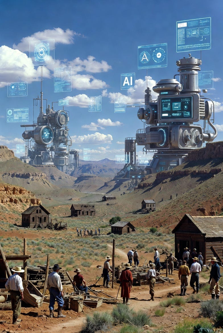 In AI, this frontier condition expresses itself as a lack of definitional clarity: not only about what systems can do, but about what intelligence itself even is, what judgment requires, and which constraints are structurally non-negotiable. Without that clarity, progress appears rapid while foundations quietly erode. People will (and do) build whole settlements in the wrong places, only to be left as ghost towns the moment it became clear that the mines dug so enthusiastically were dead-ends.