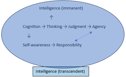 Intelligence (transcendent) is the field itself - the governing quality that suffuses and evaluates every operation. It’s the “how well” that applies to cognition, thinking, judgment, and agency simultaneously.